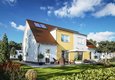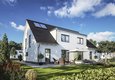 Auch optisch ist das Doppelhaus Duett 125 ein echter Hingucker. Die moderne, gradlinige Architektur überzeugt und bei der Fassadengestaltung können farbliche Akzente gesetzt werden. Das Duett 125 eignet sich auch für kleine Grundstücke, da es die vorhandene Grundstücksfläche optimal ausnutzt und trotzdem viel Wohnraum für zwei Familien bietet.